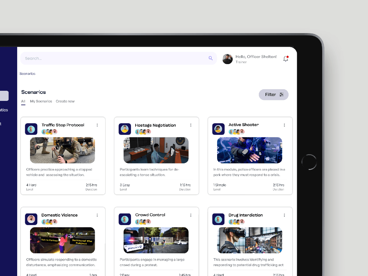 Designed a VR dashboard for police training, boosting training effectiveness and user retention via research-backed interfaces.
