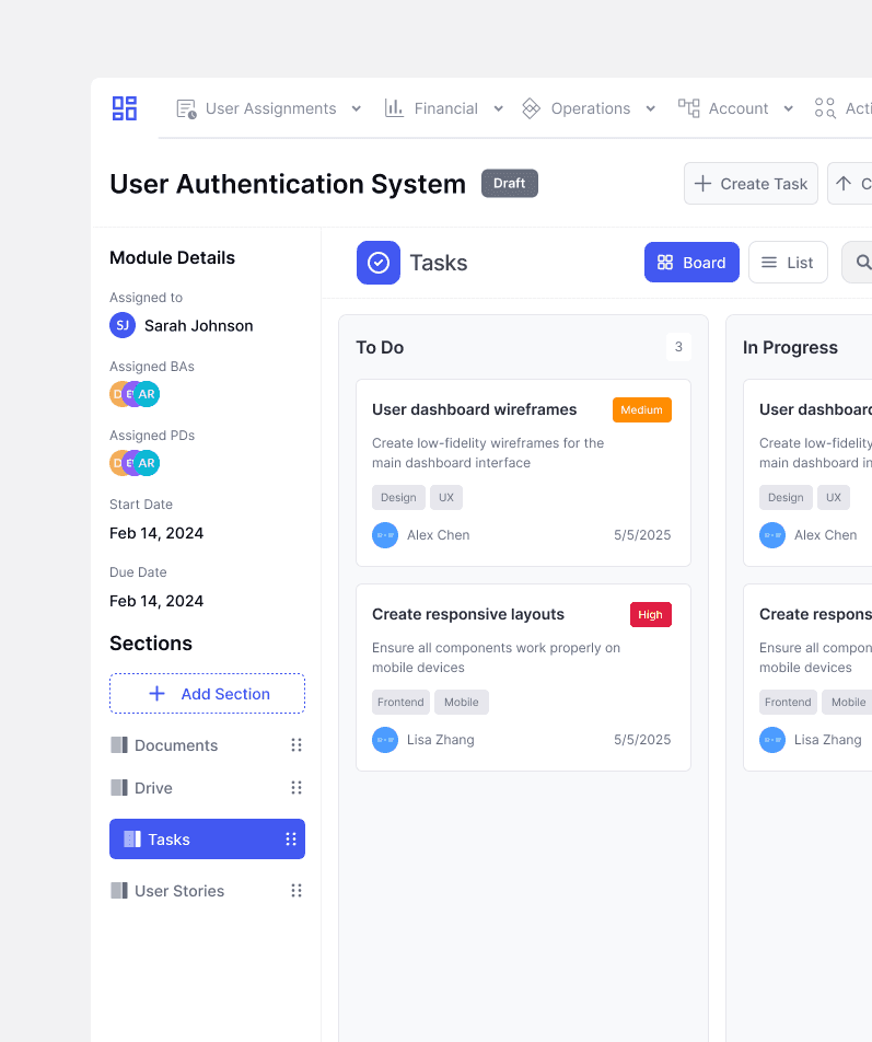 Role-Based Dashboards - Each department—Sales, Product, QA, Support—sees only the tools and data relevant to them. Dashboards reduce cognitive load and simplify daily workflows.